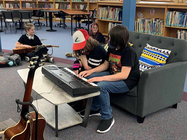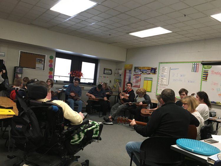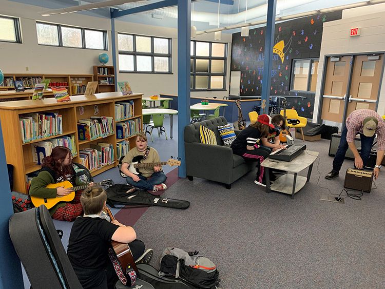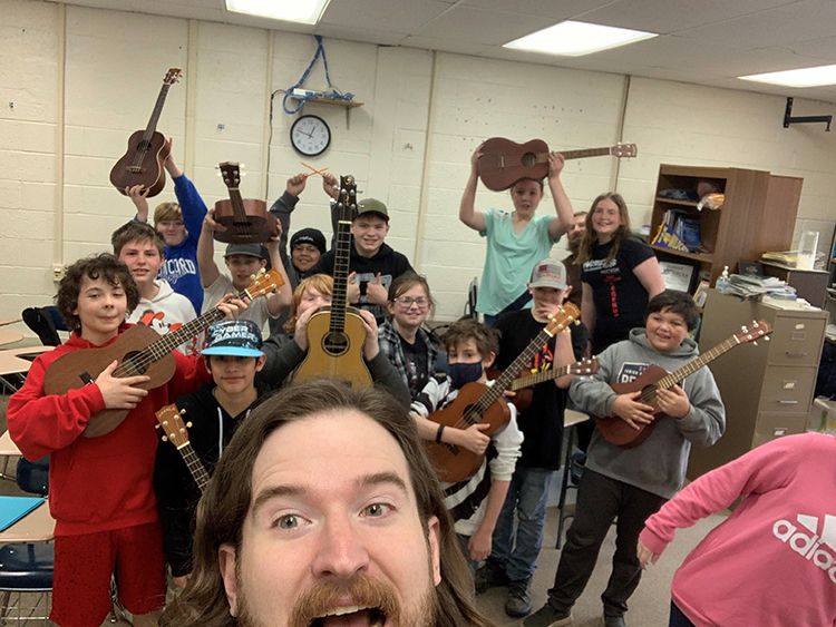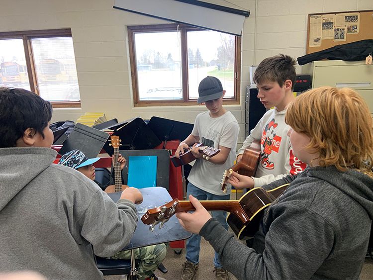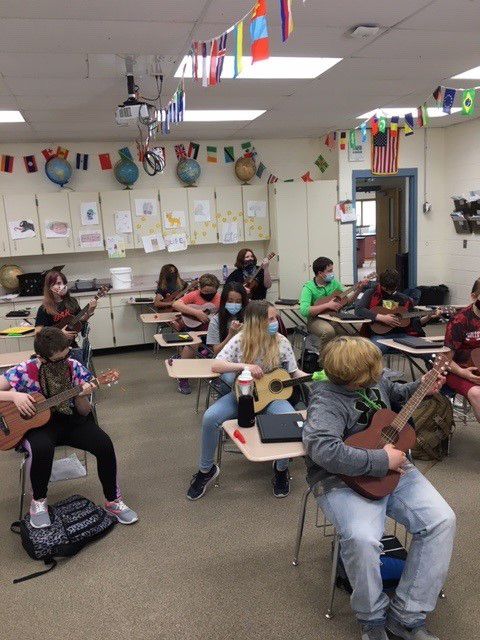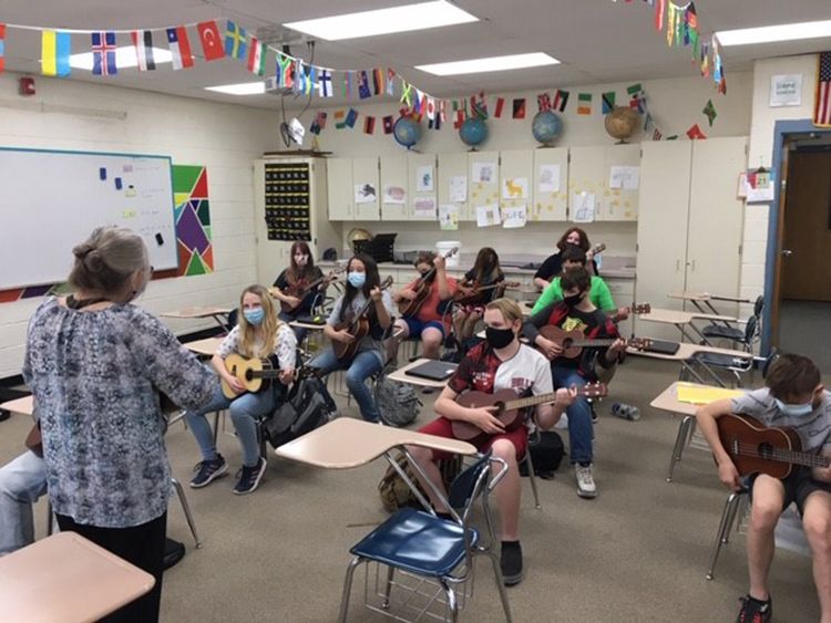 Middle School students at Wolverine Public School learning the ukulele May 2021