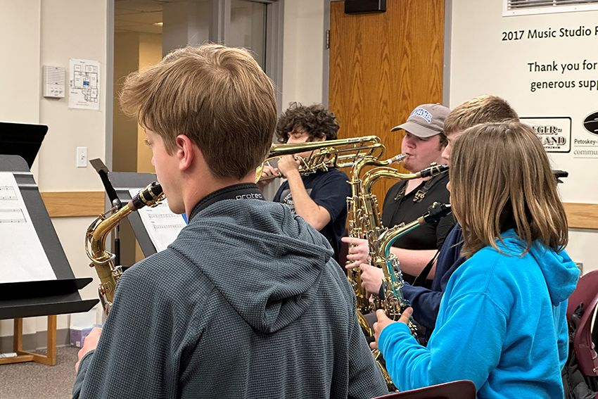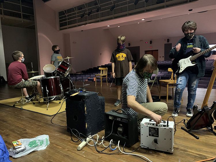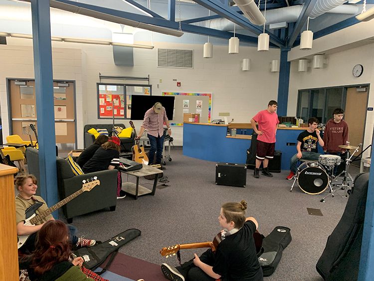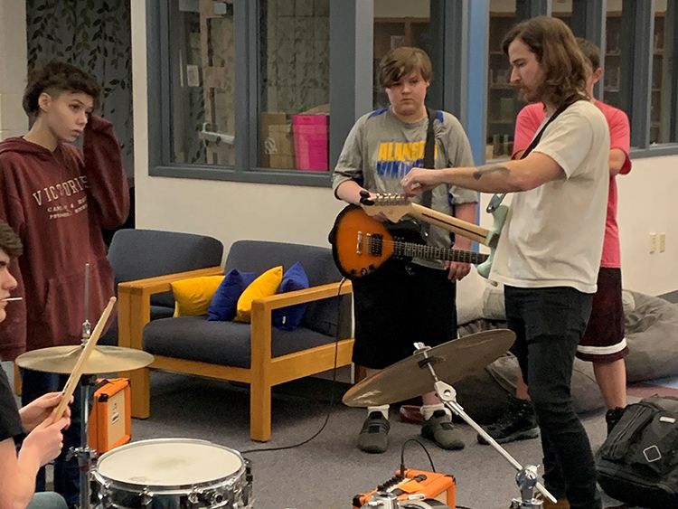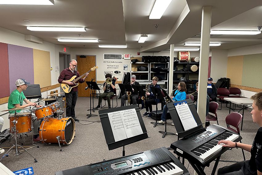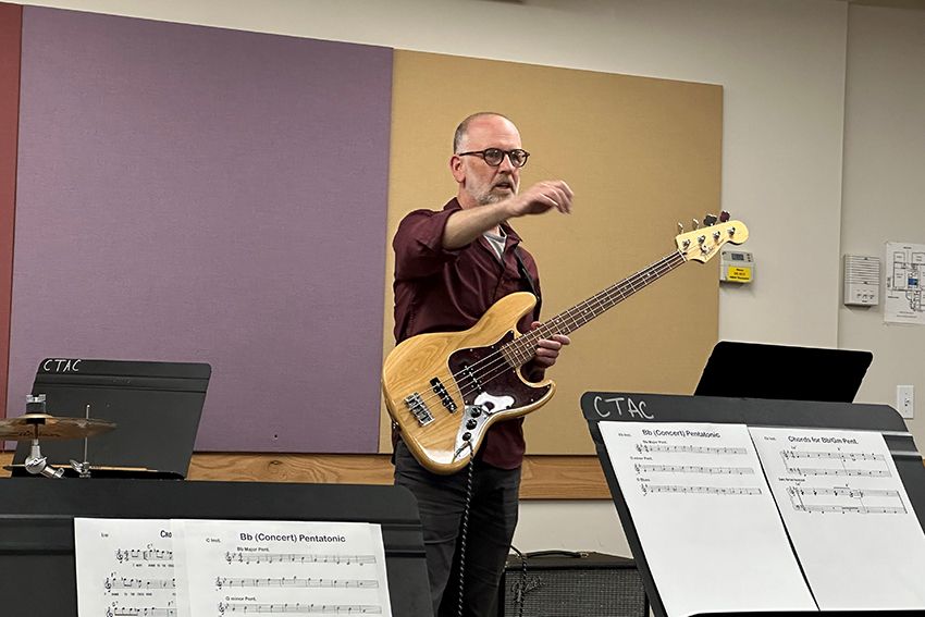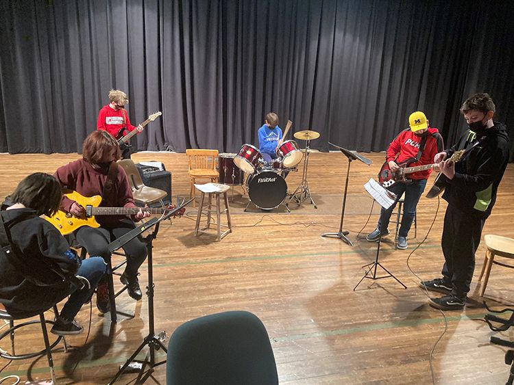 Pellston Rock Band instructor Chris Michels getting things rolling with the band (October 2021).
