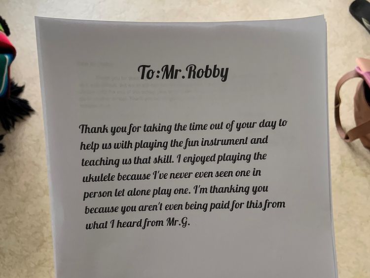Wolverine ukulele program 2022, with Robby Hovie BWCA teacher.